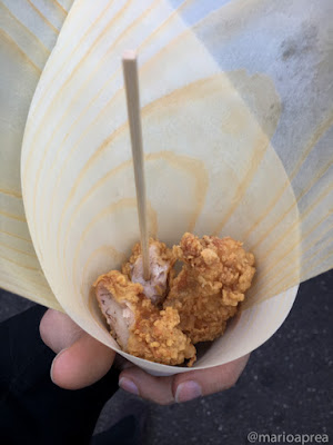All’esterno ci aspettano altre code, 10 minuti per un karaage da 5€, i cuochi sono simpatici ma alla fine è meno saporito di quello che faccio io a casa, con la mia ricetta speciale.