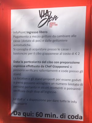 L’ingresso è gratuito ma bisogna acquistare per 2€ le bacchette usa e getta all’ingresso, se l’avessero scritto sul sito me le sarei portate da casa, odio i sotterfugi di indubbia morale per fare soldi. Sarebbe stato più onesto mettere un biglietto all’ingresso di 2€.